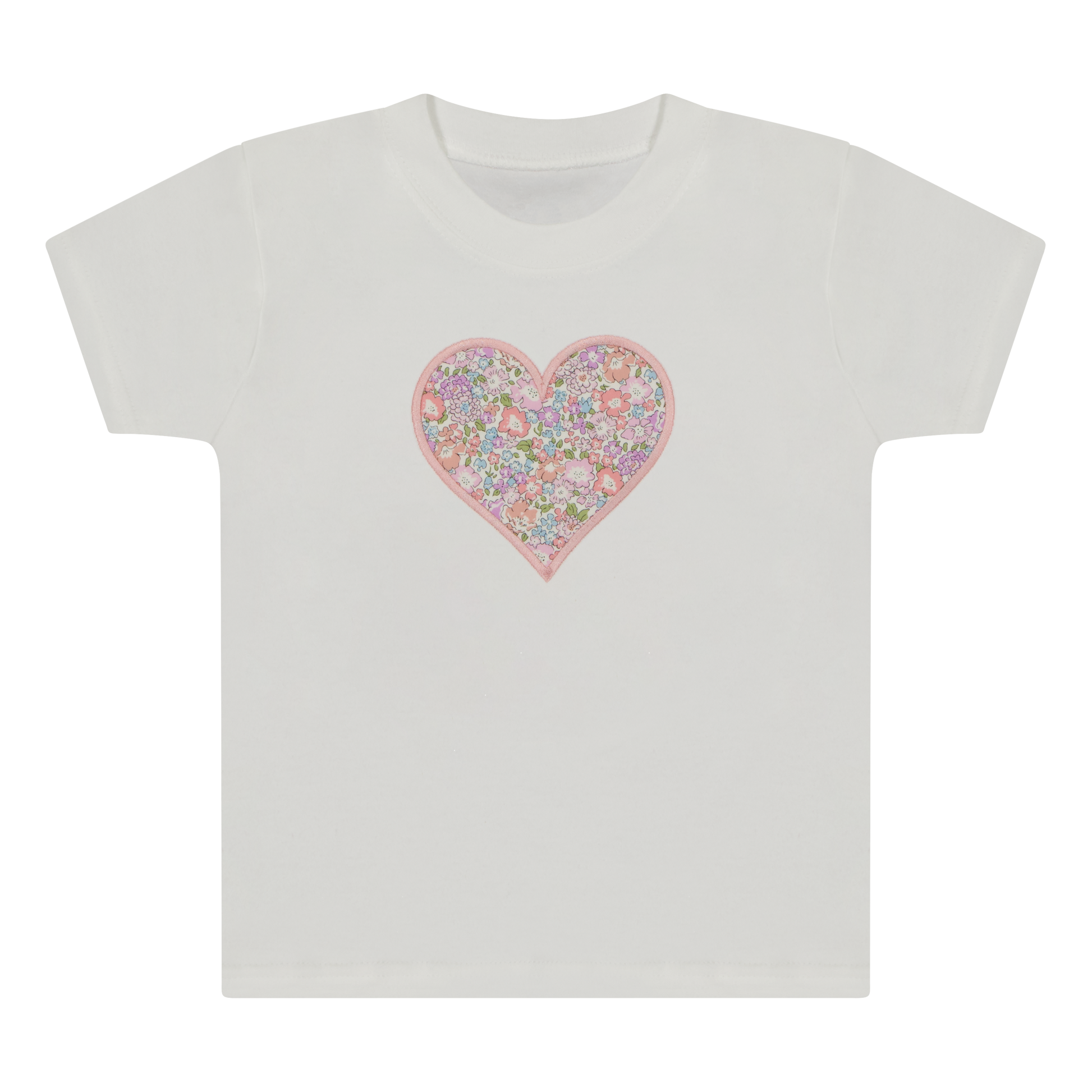 Super soft brushed cotton tee with a sweet heart appliqué fabric fill. Crafted from Liberty London Michelle E fabric and finished with delicate Pearl Blush embroidery thread, it’s simple, charming, and perfect for everyday wear.