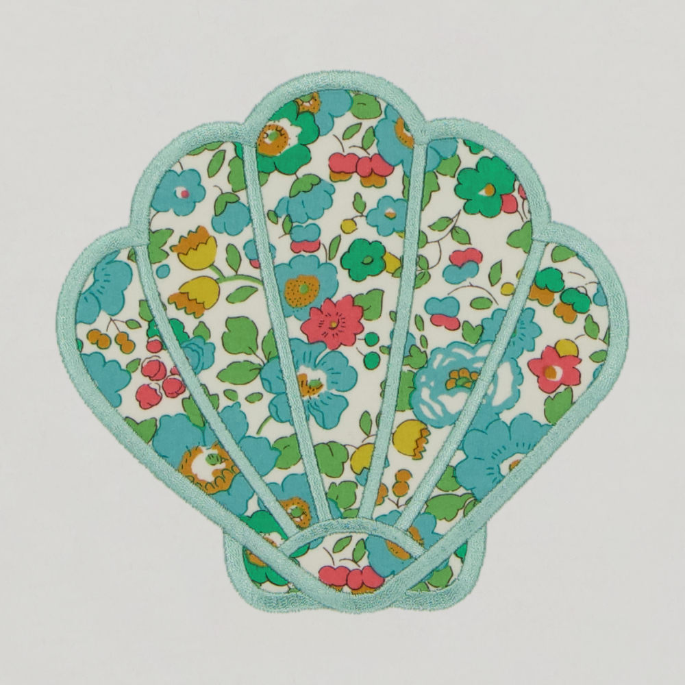 Super soft brushed cotton tee with a sea shell appliqué in Liberty London Betsy fabric, finished with a Cool Spring thread outline. Simple, fresh, and perfect for everyday wear.